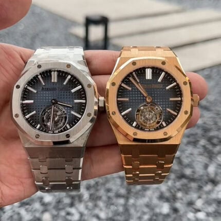 多様なコレクション 「ロイヤル オーク」や「CODE 11.59 バイ オーデマ ピゲ」など、様々なコレクションでトゥールビヨンを搭載したモデルが展開されています。ロイヤル オークは41mmのステンレススティール製ケースにスモークブルーの「グランドタペストリー」ダイヤルを持つフライングトゥールビヨンなどのモデルがあります。素材の多様性 ステンレススティール、チタン、セラミック、プラチナ、イエローゴールド、ピンクゴールド、ホワイトゴールド、カーボンなど、様々な素材のトゥールビヨンモデルがあります。