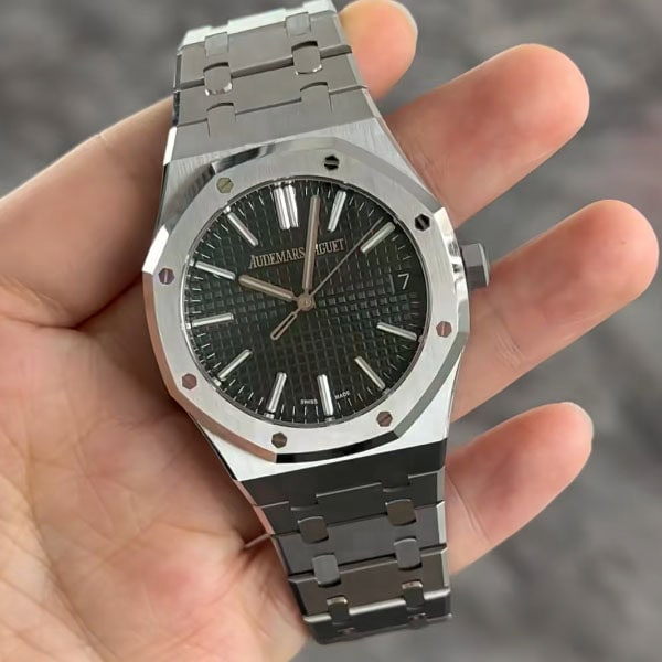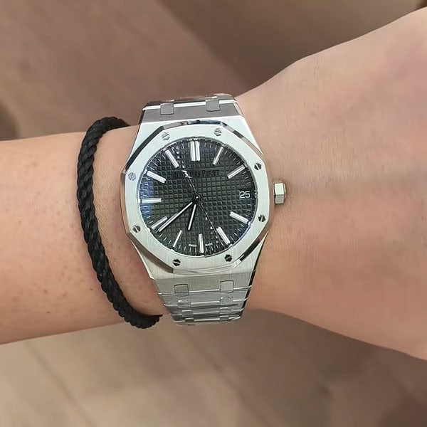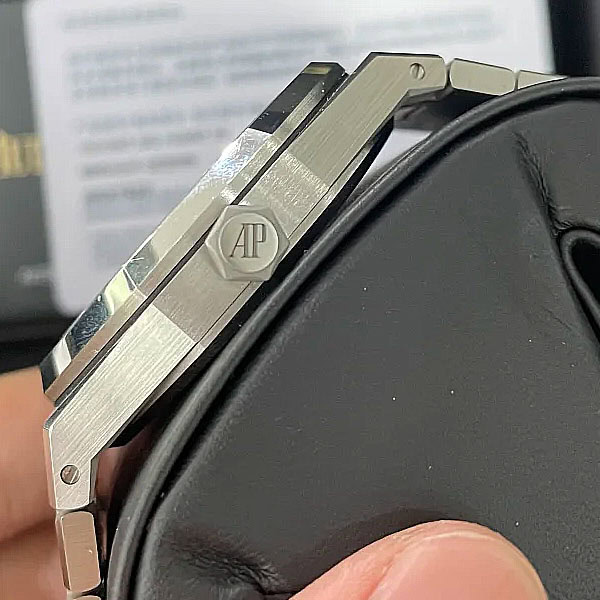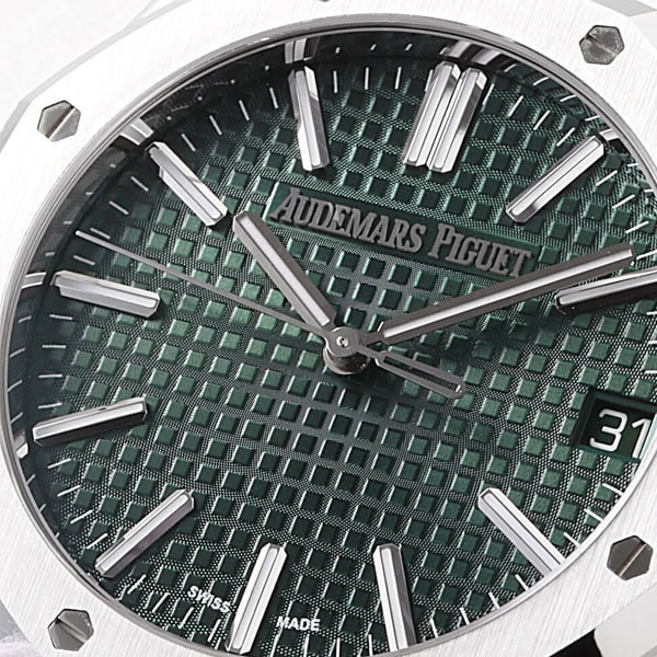 18Kホワイトゴールドのアプライドアワーマーカーとロイヤルオーク針が採用されています。