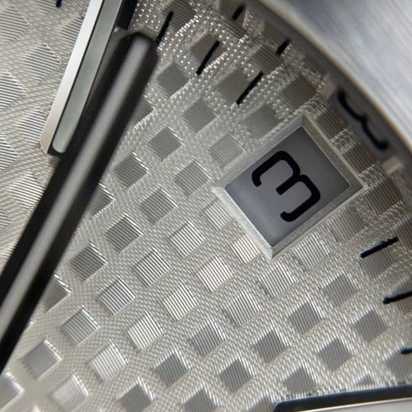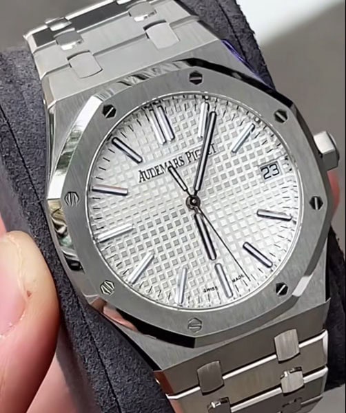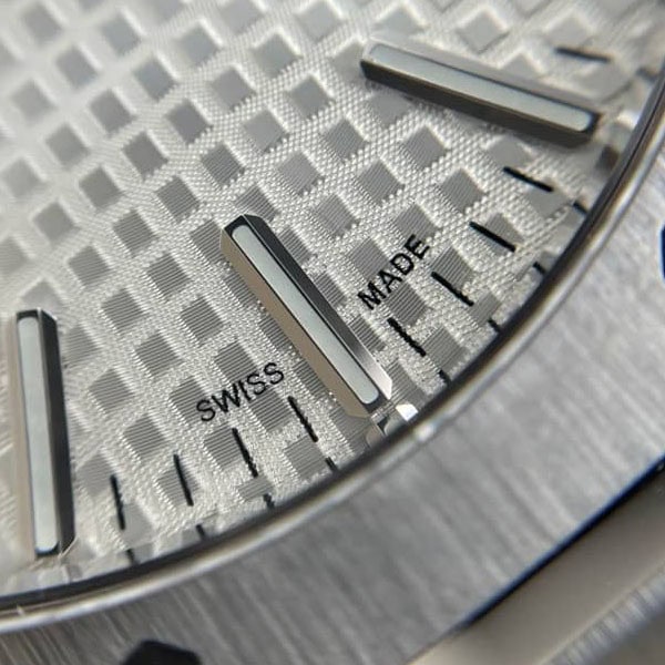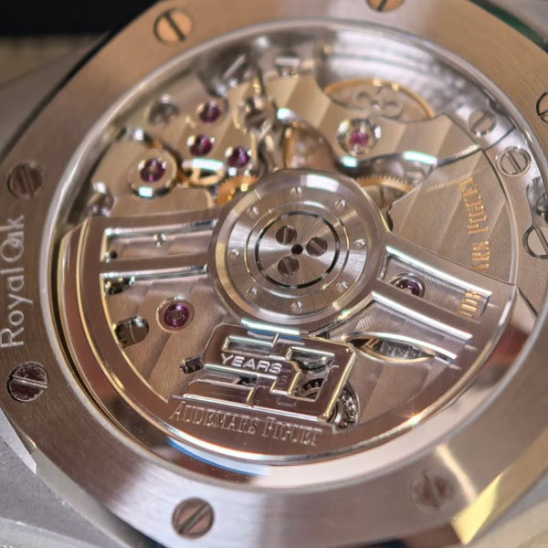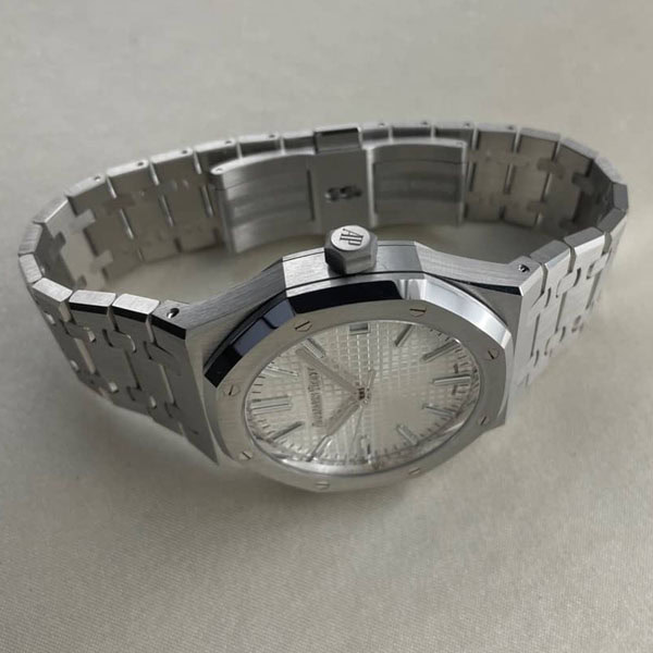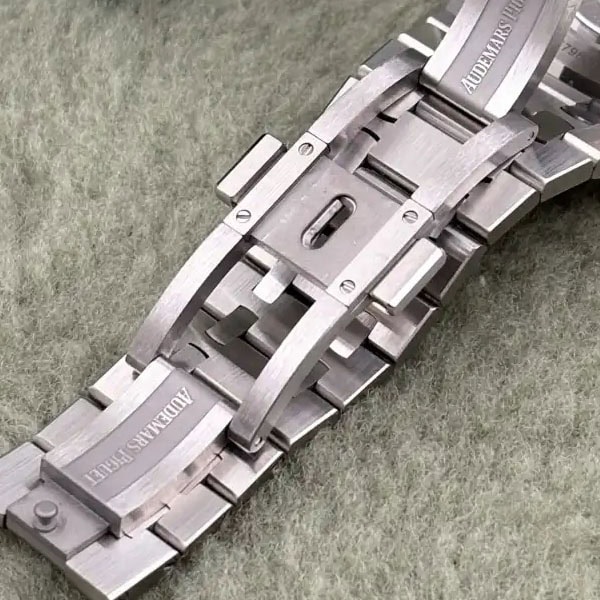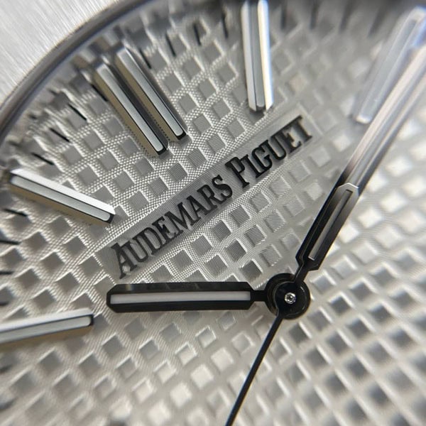 18Kホワイトゴールドのアプライドアワーマーカーとロイヤルオーク針が採用されています。