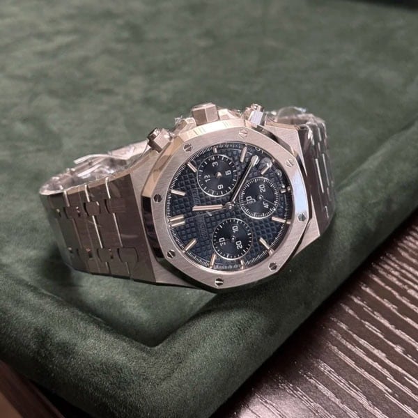 文字盤:ナイトブルーの文字盤に「グランドタペストリー」模様、ブラックカウンター、