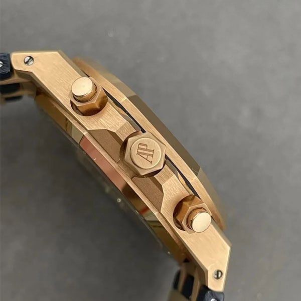 施したピンクゴールドのアプライドアワーマーカーとロイヤルオーク針