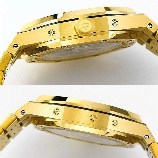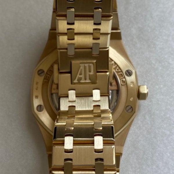 18kゴールド製のアプライドアワーマーカーとロイヤルオーク針、