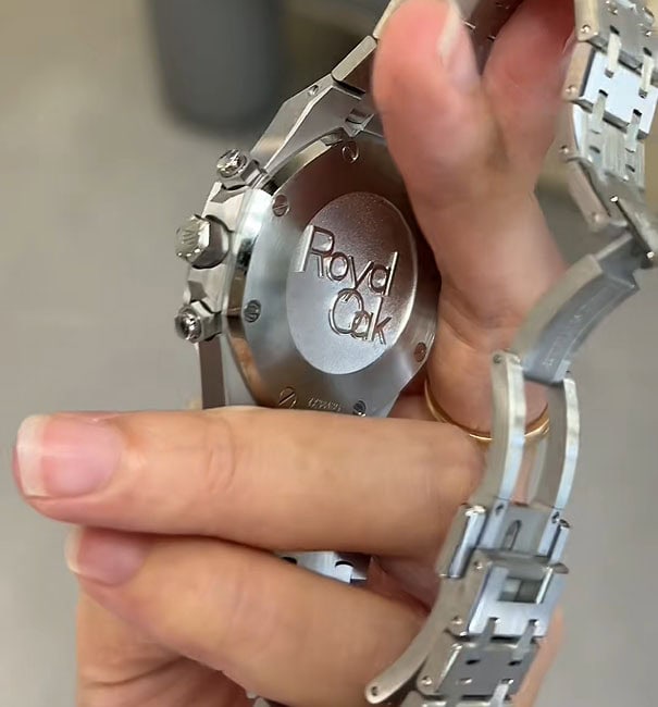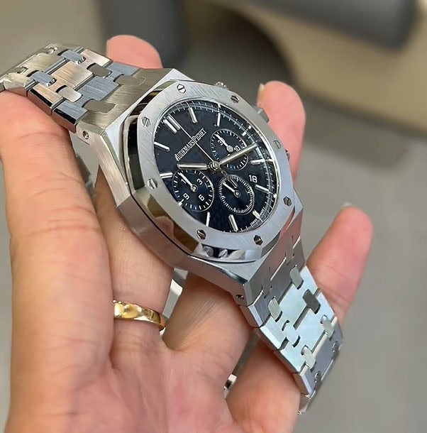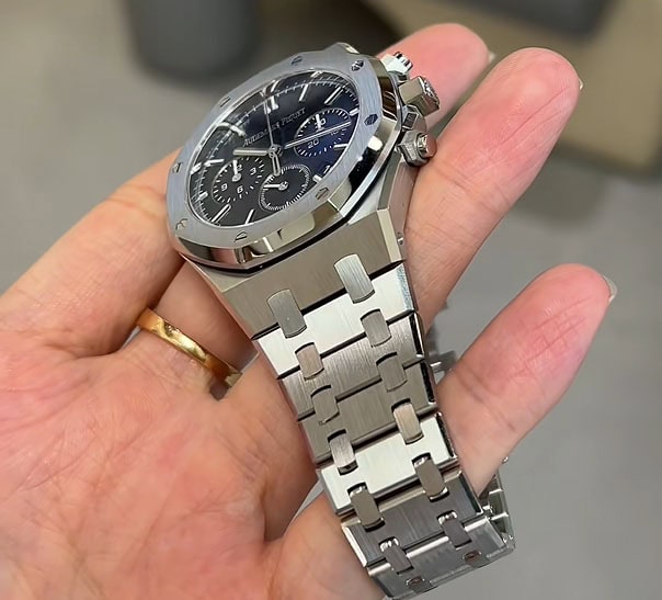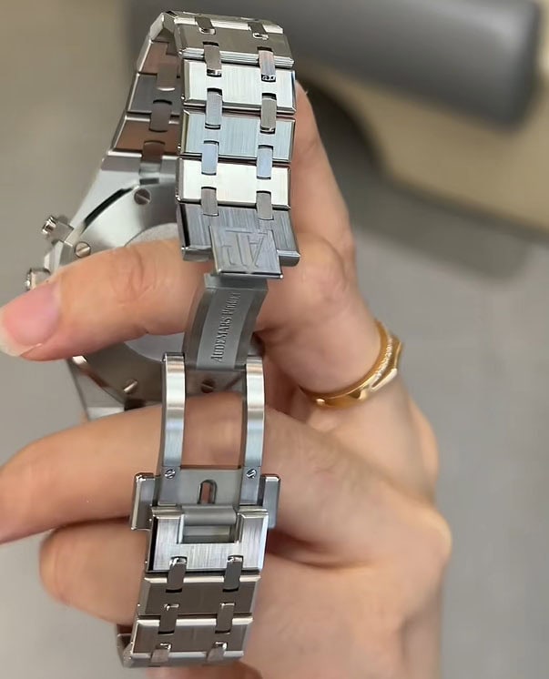 18Kホワイトゴールドのアプライドアワーマーカーとロイヤルオーク針。