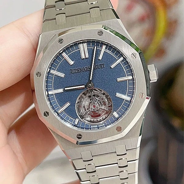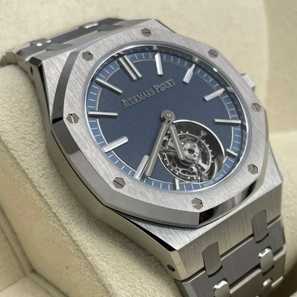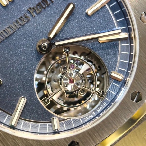 この41ミリ自動巻きフライングトゥールビヨンはロイヤルオークの進化した