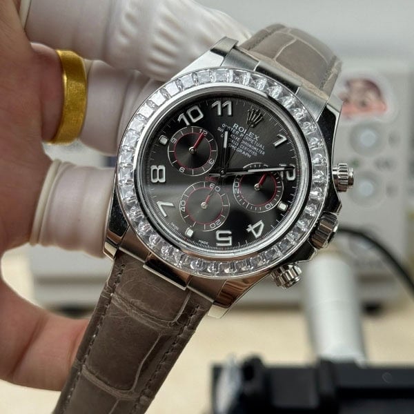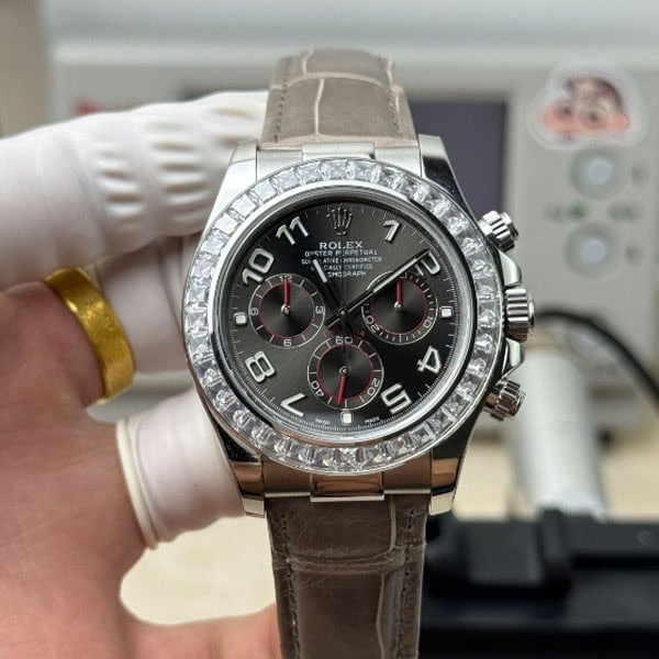 ベゼル: 固定ベゼルはモアサナイトダイヤモンドとサファイアで飾られ、本物のデザインを反映しています。