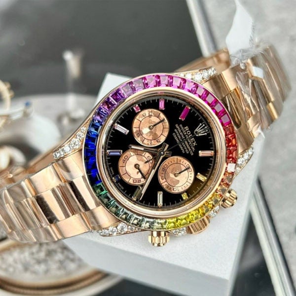 ラグ、ケースサイド、にもダイヤモンドを配したラグジュアリー仕様のデイトナコピー時計です。