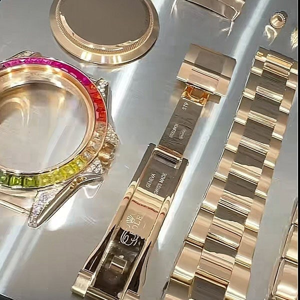 バンド及びベゼル、クラウンなど部分は全部金を厚く切ってくるんでおいた方式です。
