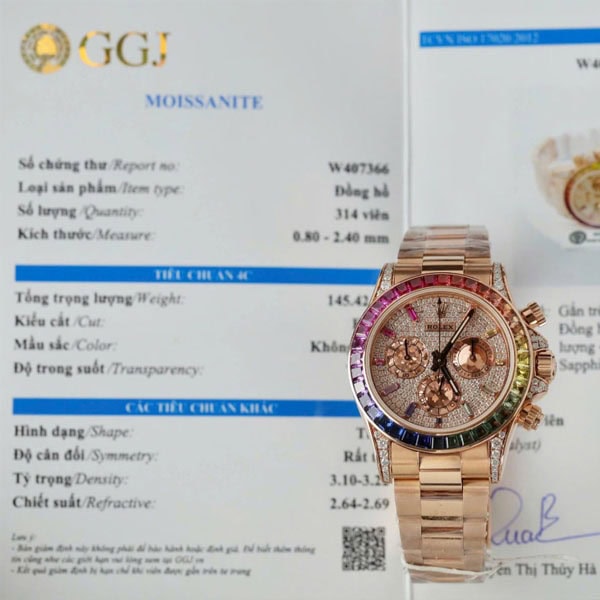文字盤:文字盤インデックスに11個のバケットカットカラーサファイアをセット