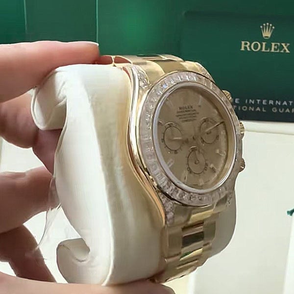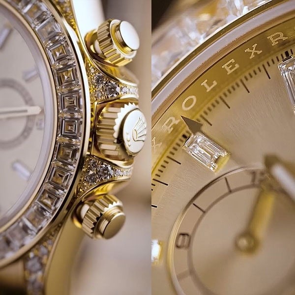 ラグ、ケースサイド、にもダイヤモンドを配したラグジュアリー仕様のデイトナコピー時計です。