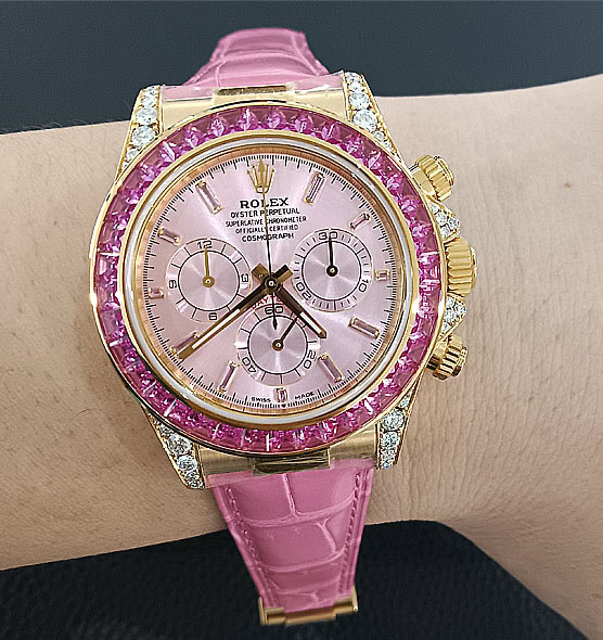 文字盤:文字盤インデックスに11個のピンクサファイア・セット