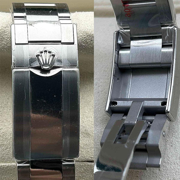 6時のところにレザー刻印されたロレックス王冠が、その本物らしさを更に高めています。