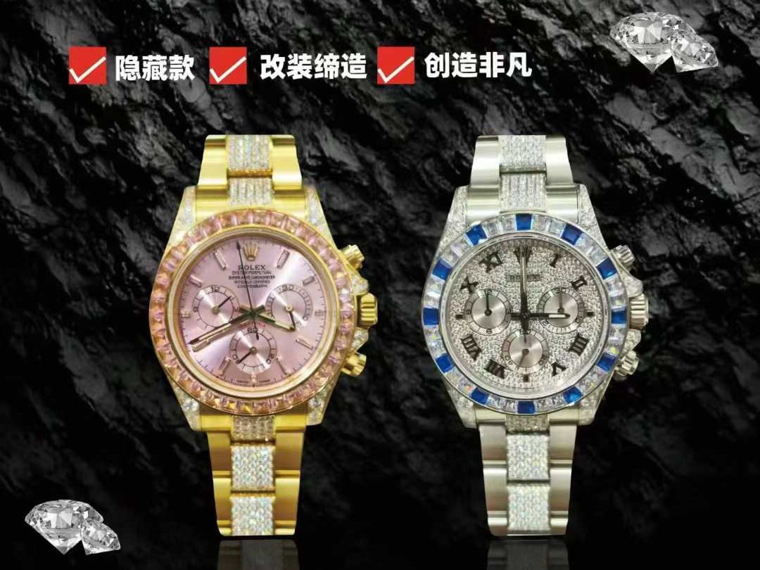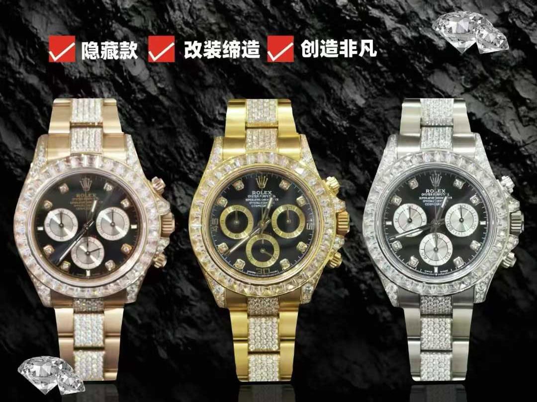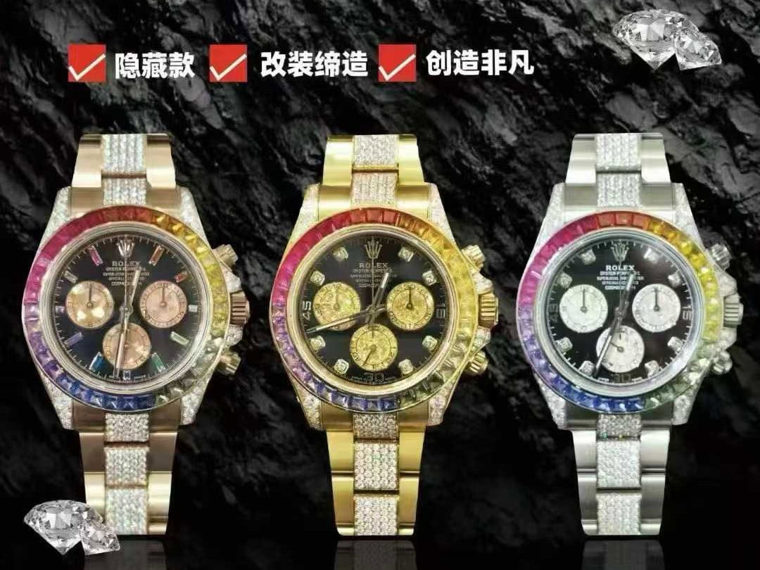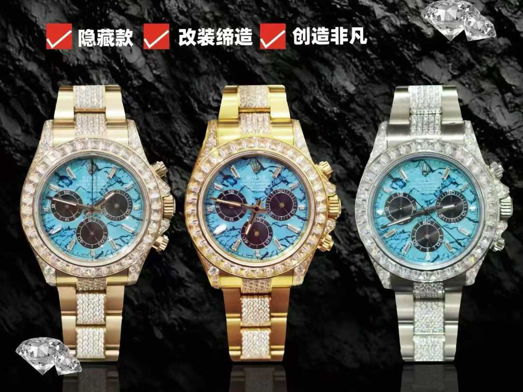 ラグ、ケースサイド、にもダイヤモンドを配したラグジュアリー仕様のデイトナコピー時計です。