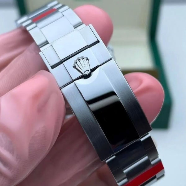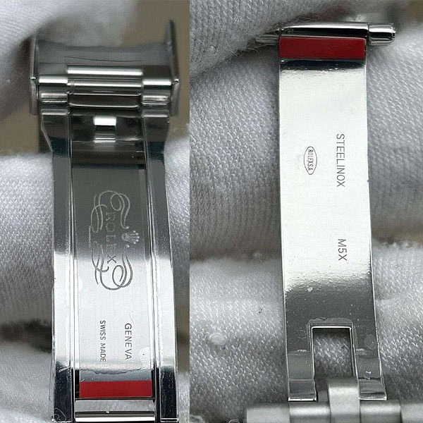6時の位置にある小さいレーザー王冠透かしは時計の本物らしさを高めています。