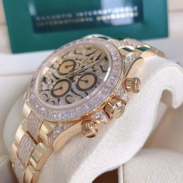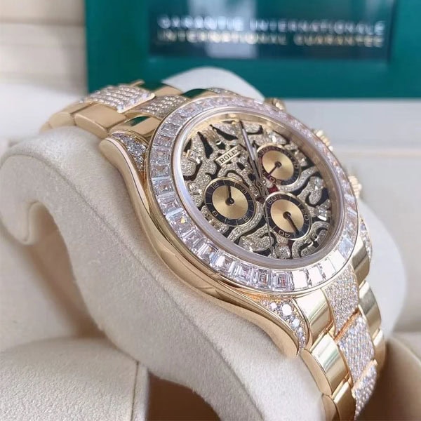 ラグ、ケースサイド、にもダイヤモンドを配したラグジュアリー仕様のデイトナコピー時計です。