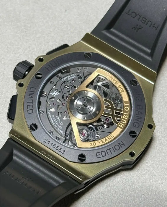 マニュファクチュール製自動巻きクロノグラフキャリバー「ウニコ」を搭載した「ビッグ・バン 20th アニバーサリー」には、