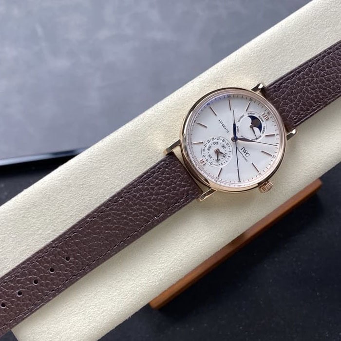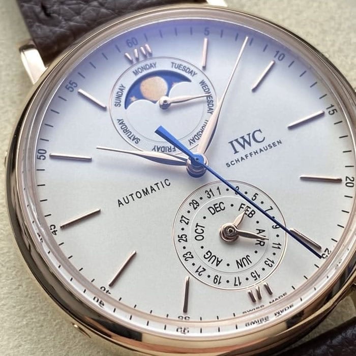 曜日、日付、月、ムーンフェイズのすべてが文字盤上に見やすく並んだ「ポートフィノ・コンプリート・カレンダー」は、新開発のコンプリート・カレンダーモジュールを採用した初のIWCウォッチです。