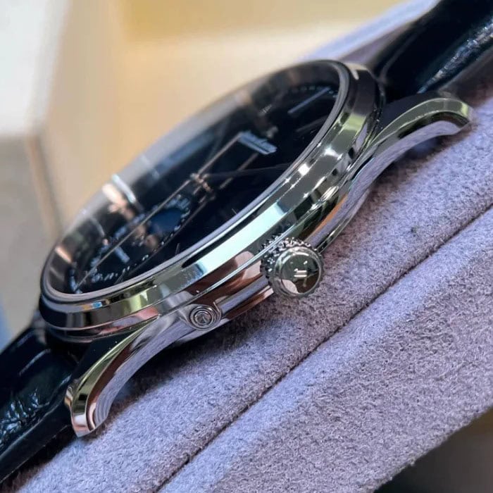 6時位置にはムーンフェイズ表示と日付表示が鎮座しクラシカルな雰囲気を演出してくれます。
