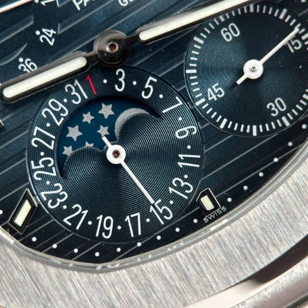 ポインターデイト、パワーリザーブ表示、ムーンフェイズ、スモールセコンドといったプチコンプリケーション