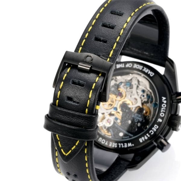 ストラップ:小さな穴が開いたブラックレザーとイエローのラバーを組み合わせたストラップが付属しています。