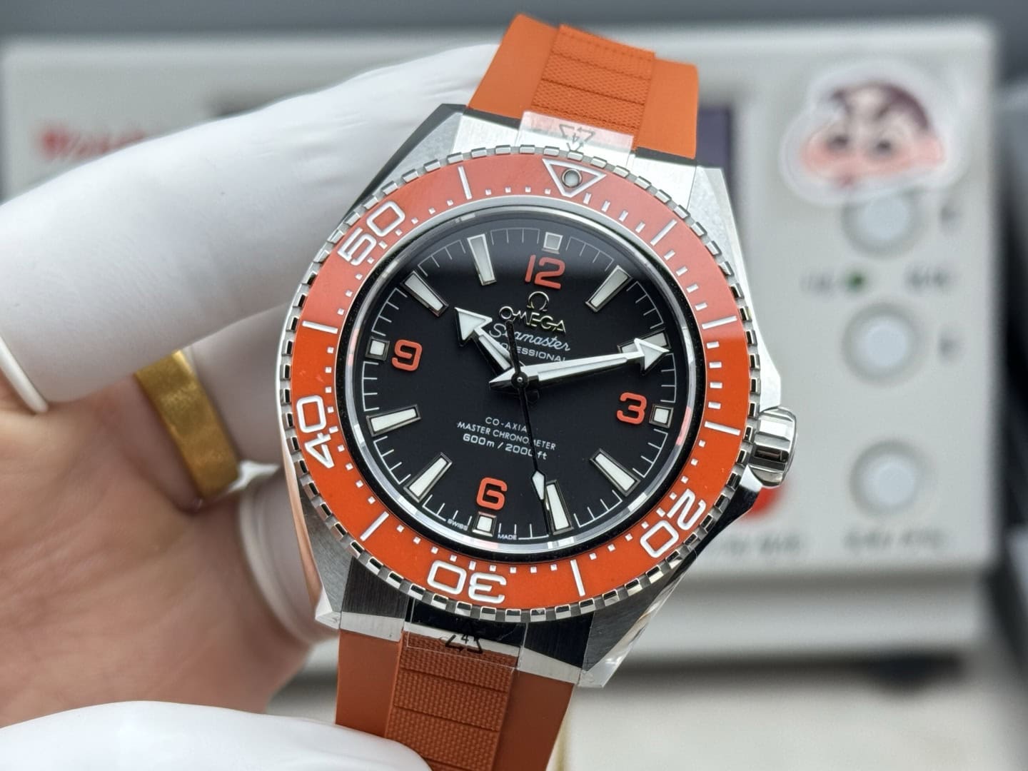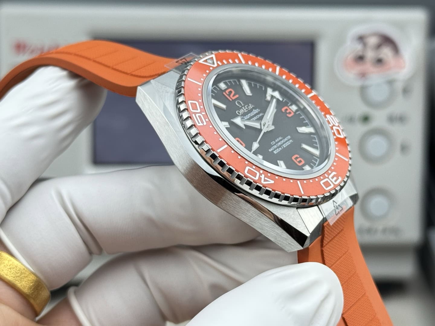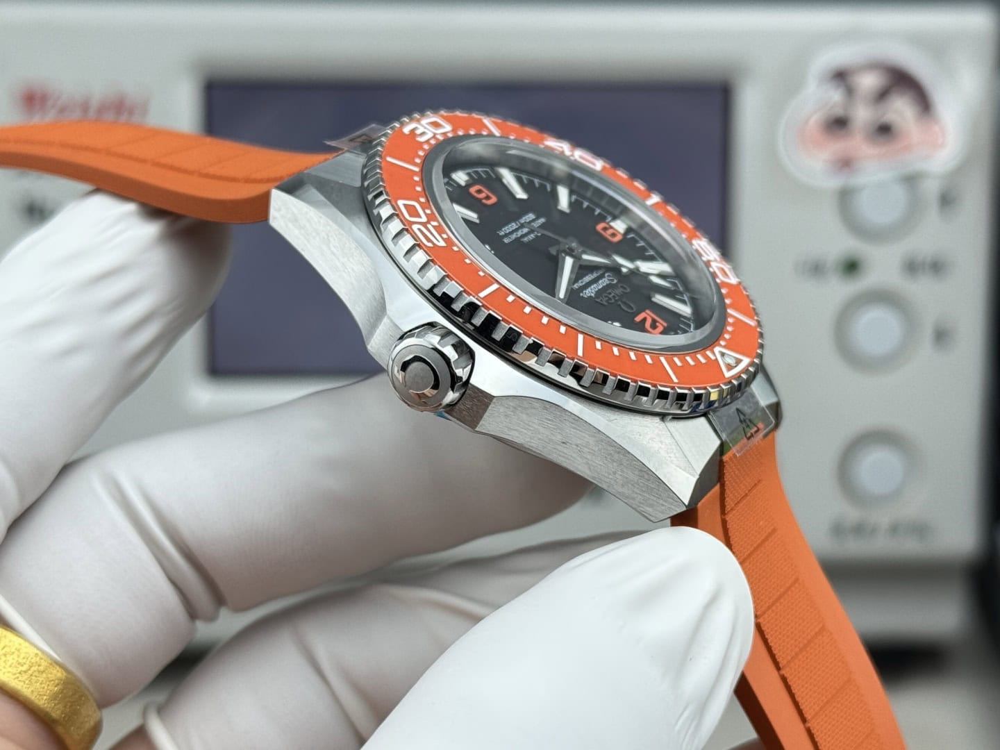 ベルト:オレンジのラバーストラップ。