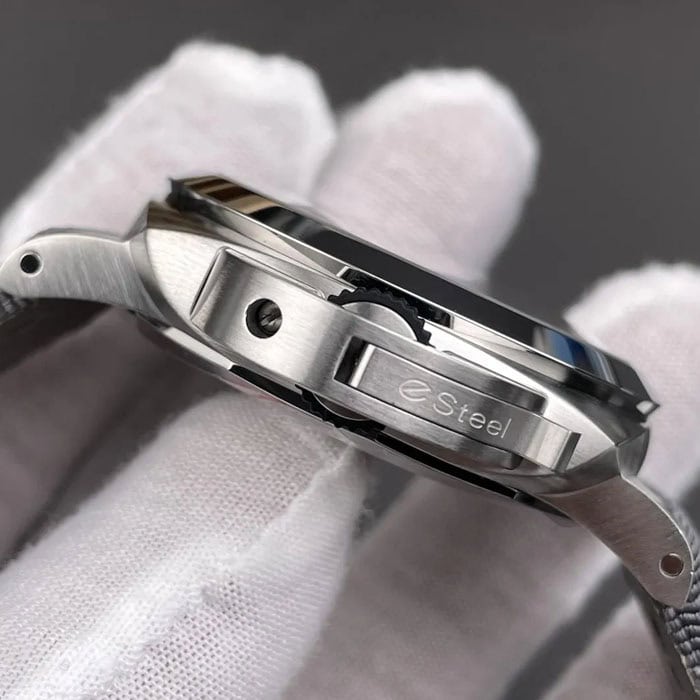 ケース素材にはリサイクルステンレス合金「eSteel」を採用し、サステナビリティに配慮した仕様となっています。