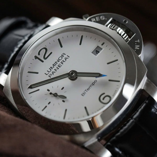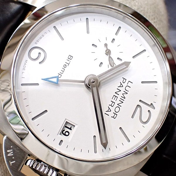 文字盤:ホワイトに夜光アラビア数字とアワーインデックス。