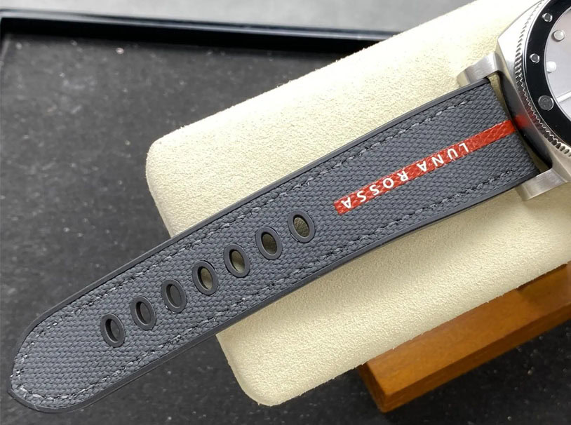 ブラックラバーでコーティングされたリュウズを備えており、激しいセーリングやレース中でも実用性を損なわない仕様となっている。本物の機能とも100%完全一致、申し分ない一品です。