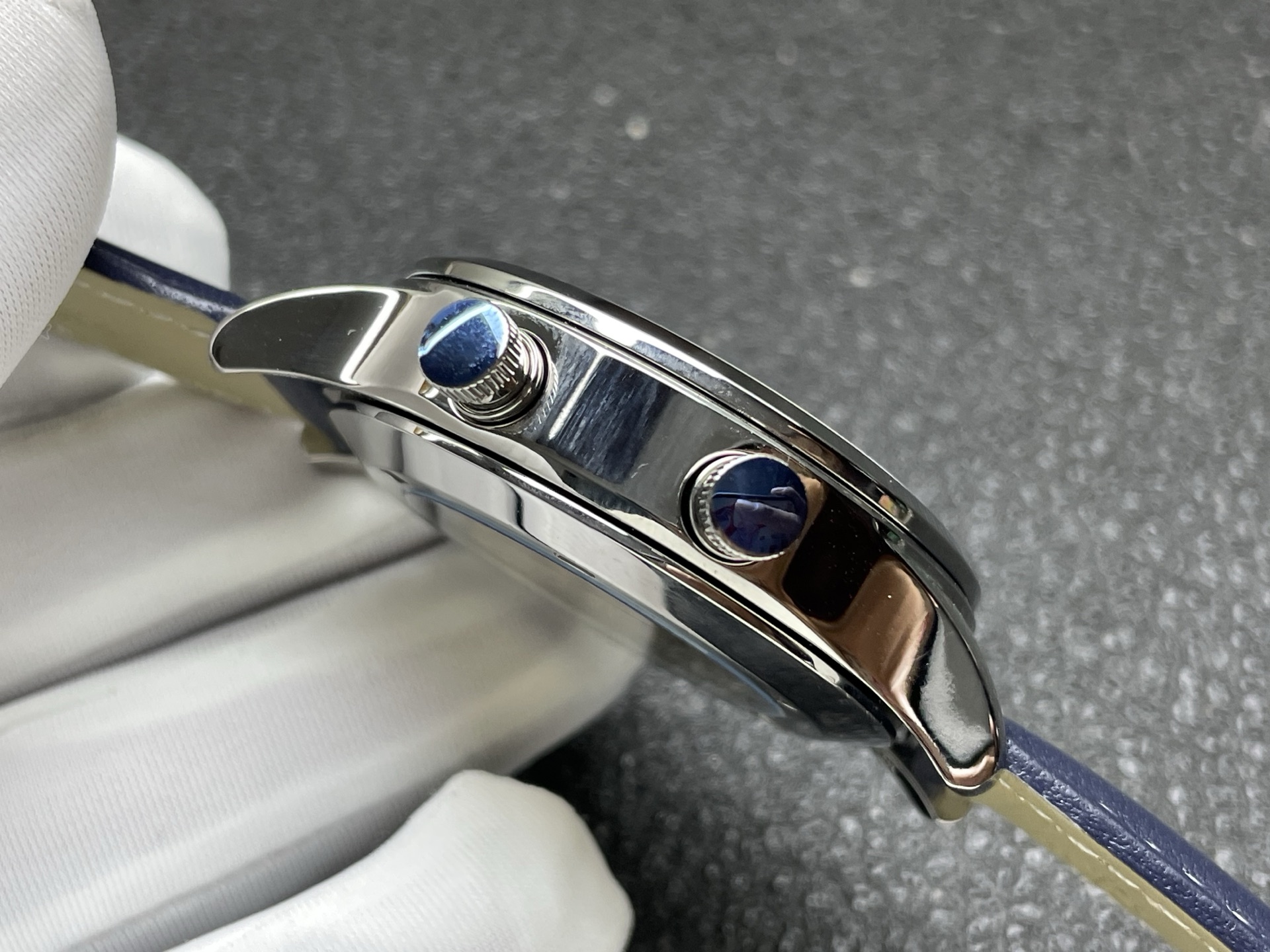 ケースの左側には2つのボタンがあり、どちらも時針の素早い