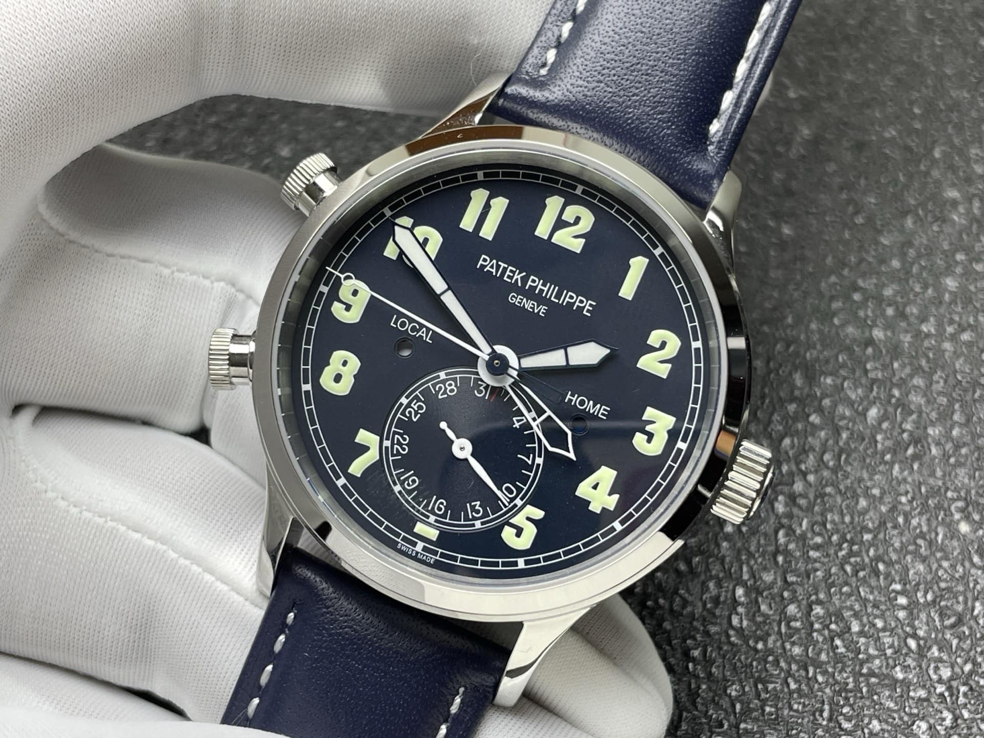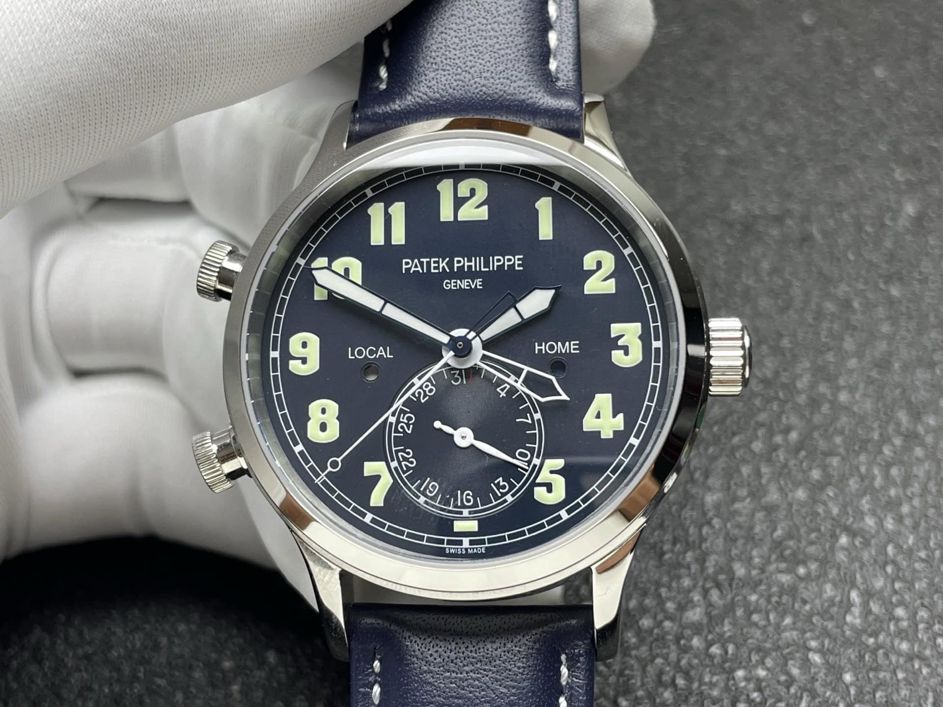 文字盤の両側には小さな窓があり、それぞれLOCALとHOMEの昼夜を表示します。