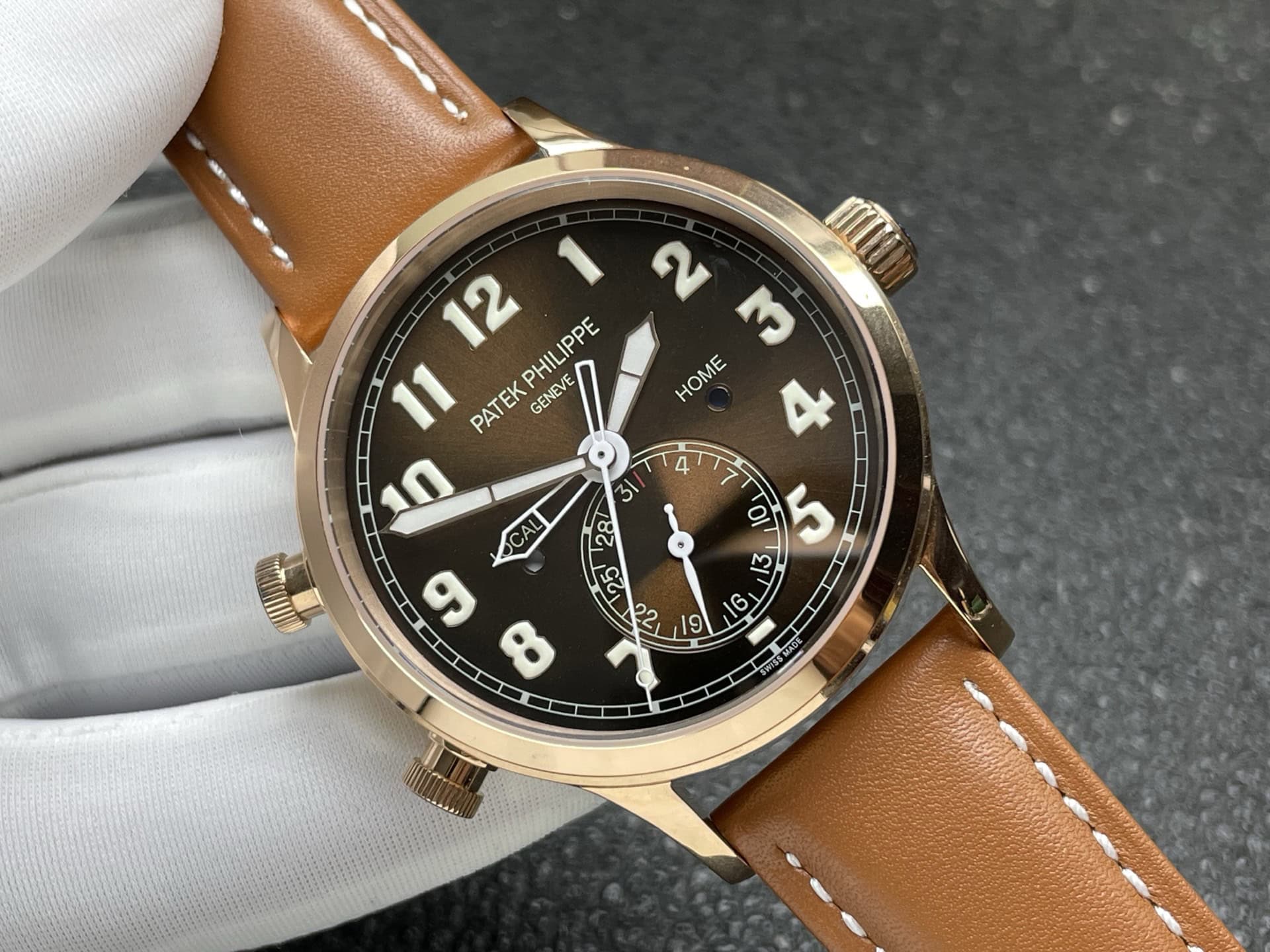 文字盤の両側には小さな窓があり、それぞれLOCALとHOMEの昼夜を表示します。