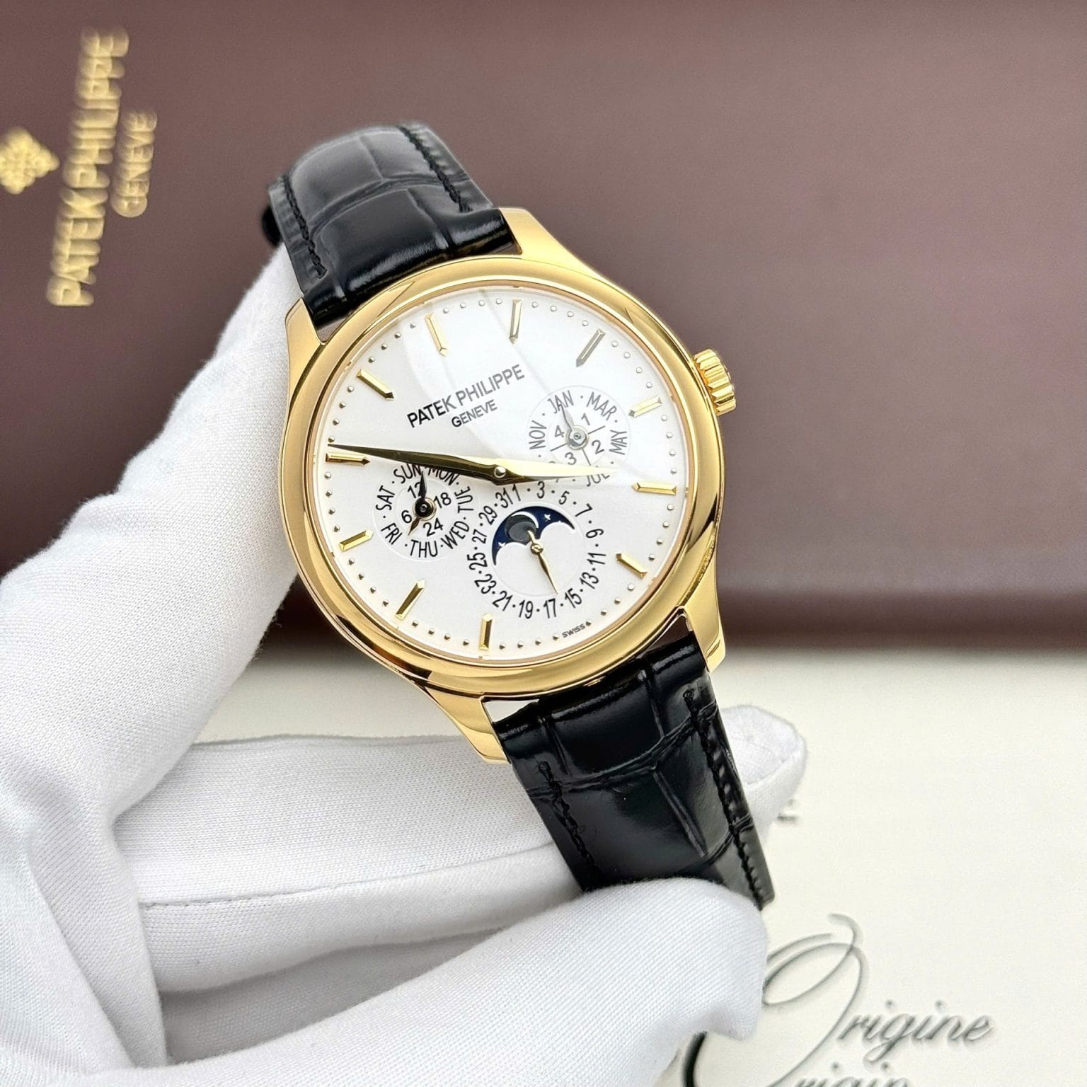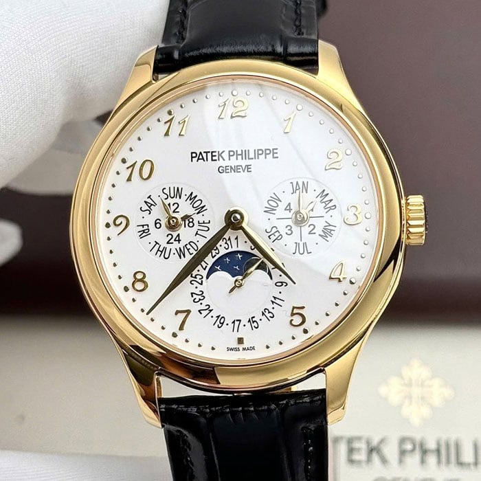 カラトラバ・ケースやブレゲ数字のインデックスなどの古典的なディテールをモダンに仕上げた、パテック フィリップの永久カレンダーモデル。