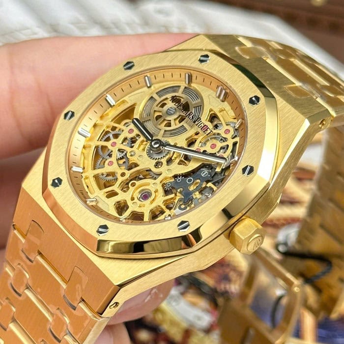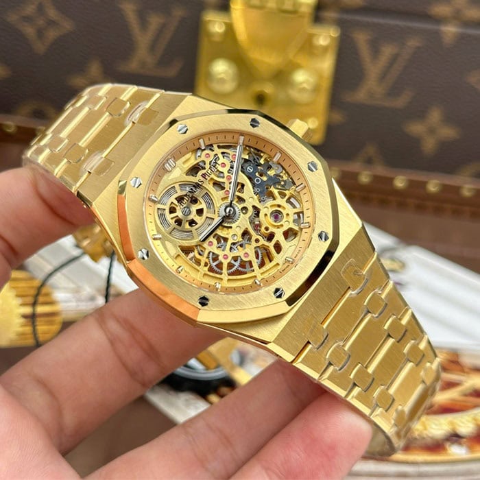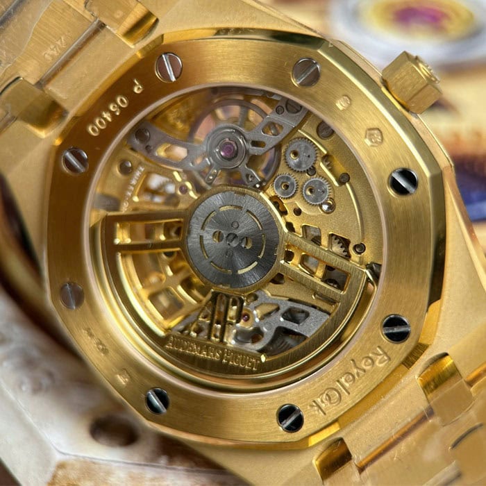文字盤:イエローゴールドカラーのオープンワークダイヤル、