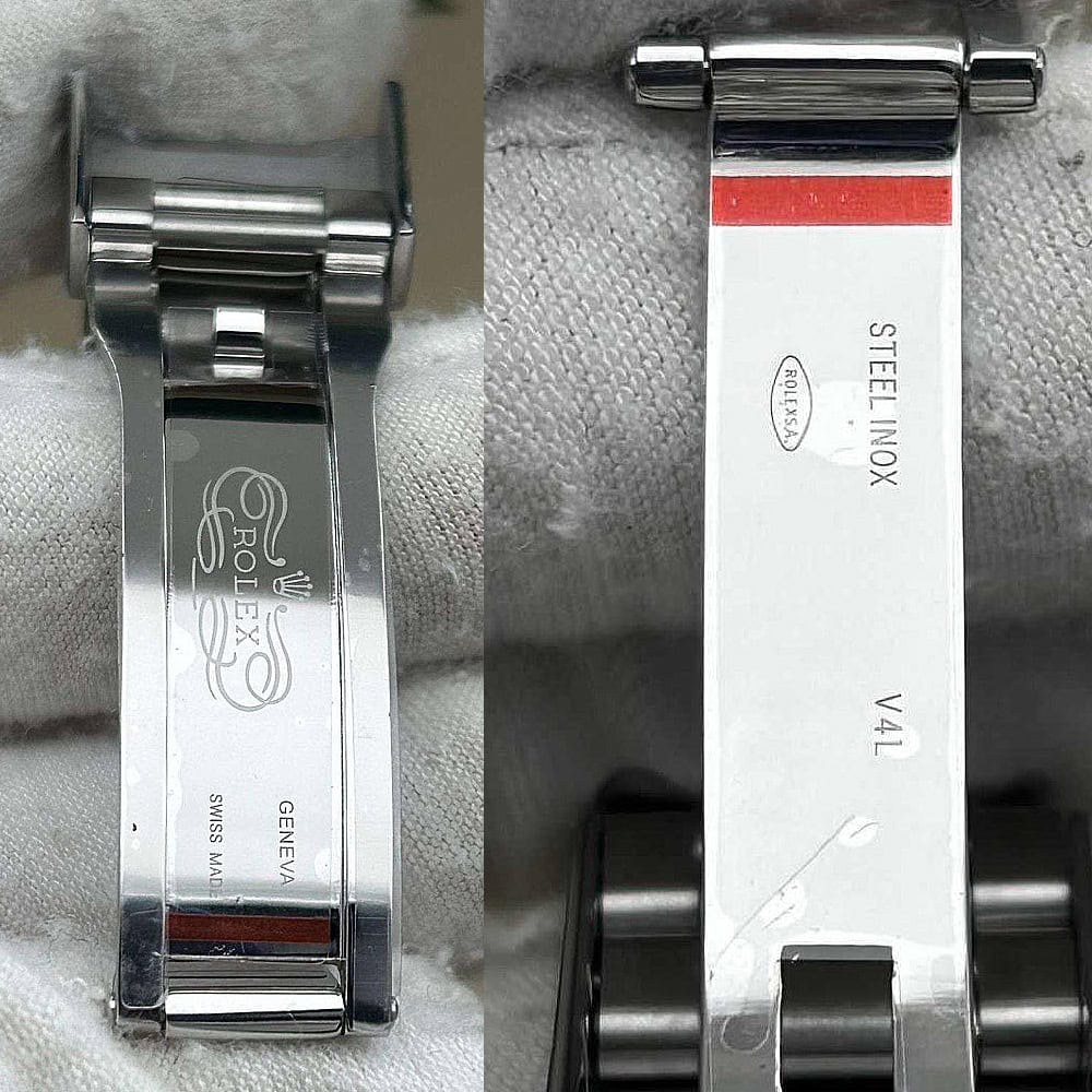 ベルト:オイスター デザインとフラット 3 ピース リンクのブレスレットはソリッド904Lステンレススチールで作り出されており、DLCスクラッチプロティングコーティングを施されています。しっかりとしたネジ山により、楽にベルト調整を実現し、5ミリをコンフォートエクステンションリンク(イージリンクとも言う)を備えた折りたたみ式オイスターロック安全クラスプも備えています。