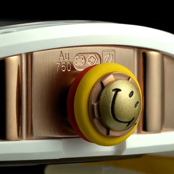 リューズにはイエローゴールドのスマイリーがデザインされています。