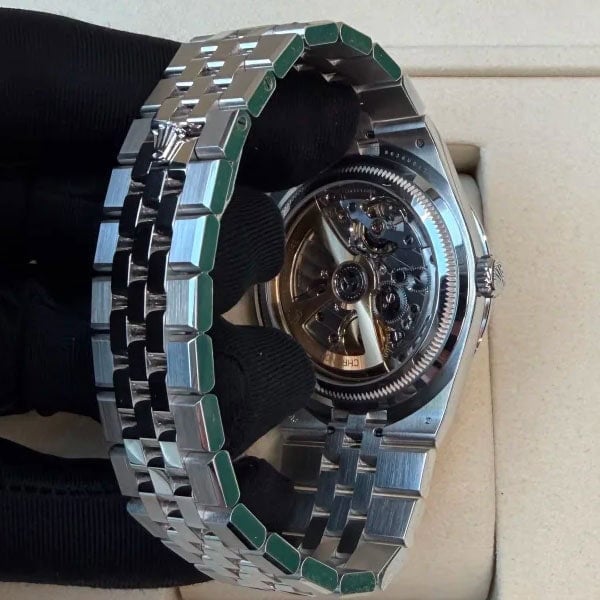 ブレスレットは、表面がフラットな5列リンクの新型「フラットジュビリーブレスレット」。
