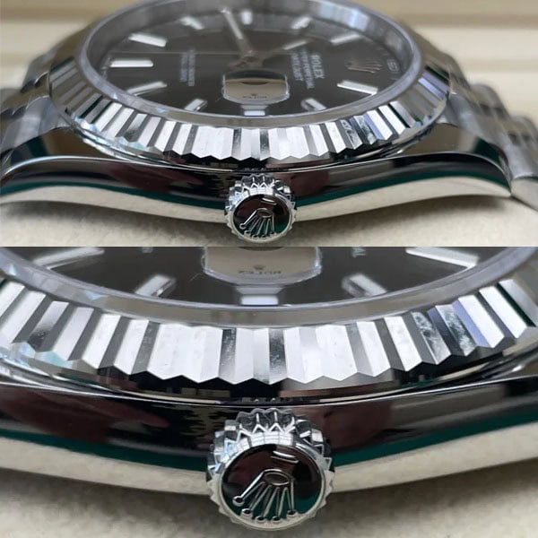 Rehautリンクに刻まれれいるROLEXROLEXレザー刻印は完全に正規品と一致し、時計の本物らしさを確保しています。