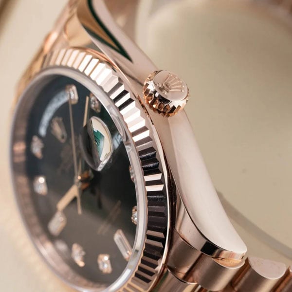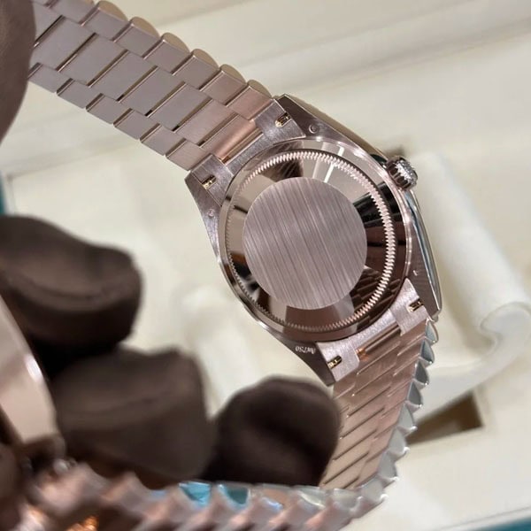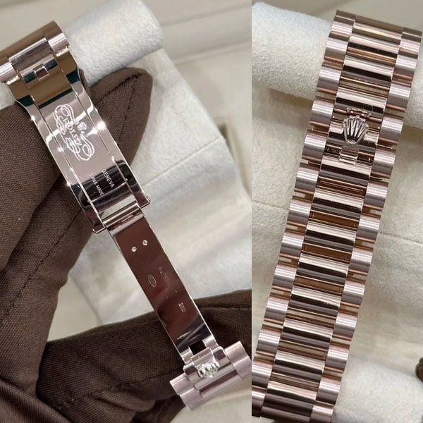 正しいデイトフォントとサイズを採用しており、アワーマーカーと針に施された18Kピンクゴールドコーティングは色落ちを防ぐできるのみならず、