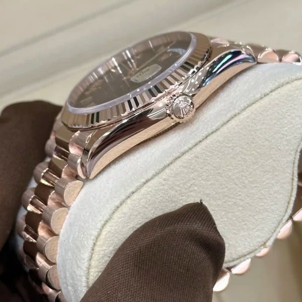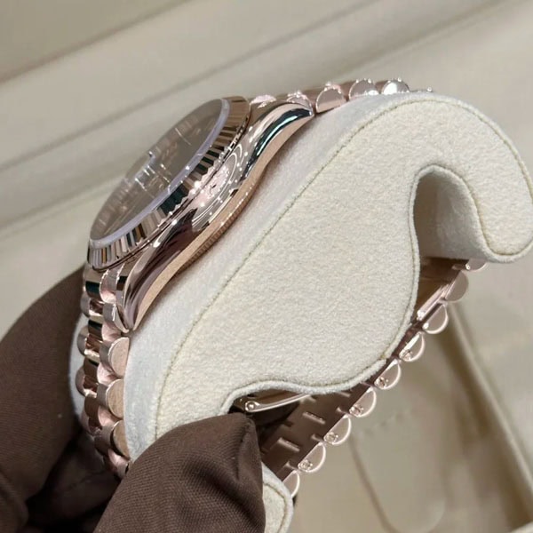 正しいデイトフォントとサイズを採用しており、アワーマーカーと針に施された18Kピンクゴールドコーティングは色落ちを防ぐできるのみならず、