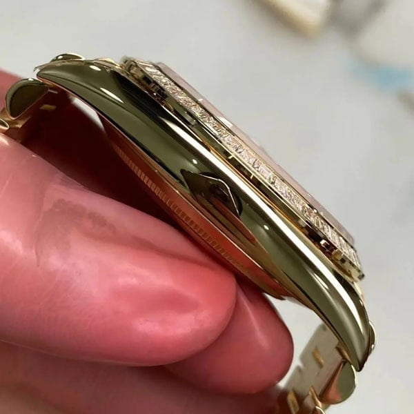 印刷、彫刻が施された文字盤は、本物のロレックスのものと見分けがつきません。