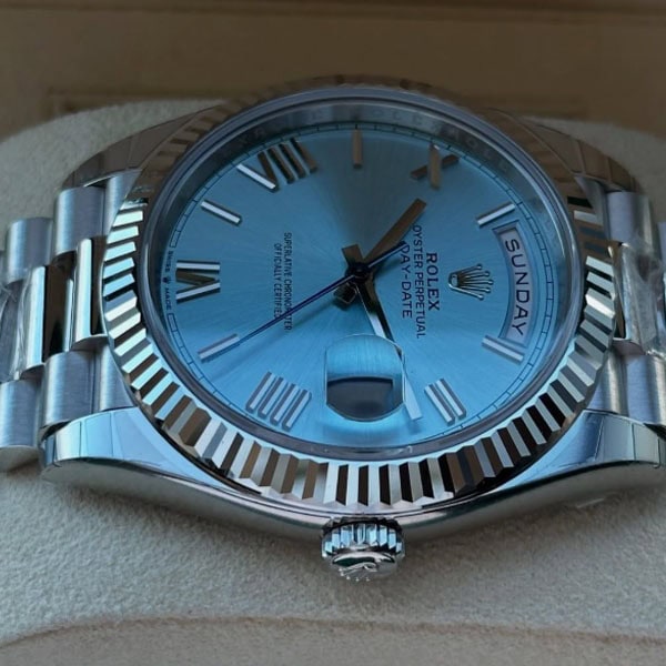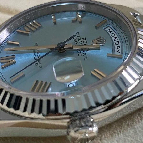 文字盤:アイスブルーダイアルは、ロレックスのプラチナ製時計にのみ採用される特別なカラーです。