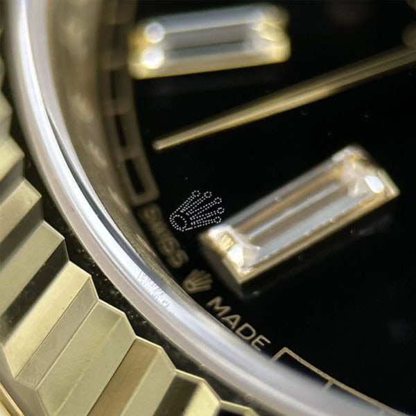 正しいデイトフォントとサイズを採用しており、アワーマーカーと針に施された18Kイエローゴールドコーティングは色落ちを防ぐできるのみならず、