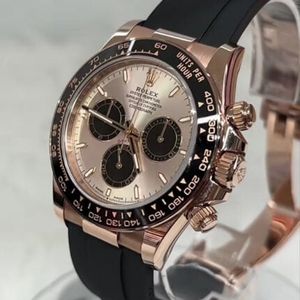 文字盤:ブラック文字盤とローズゴールドサブダイヤル、スティックマーカーと相まって、