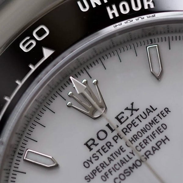 6時の位置にある小さいレーザー王冠透かしは時計の本物らしさを高めています。