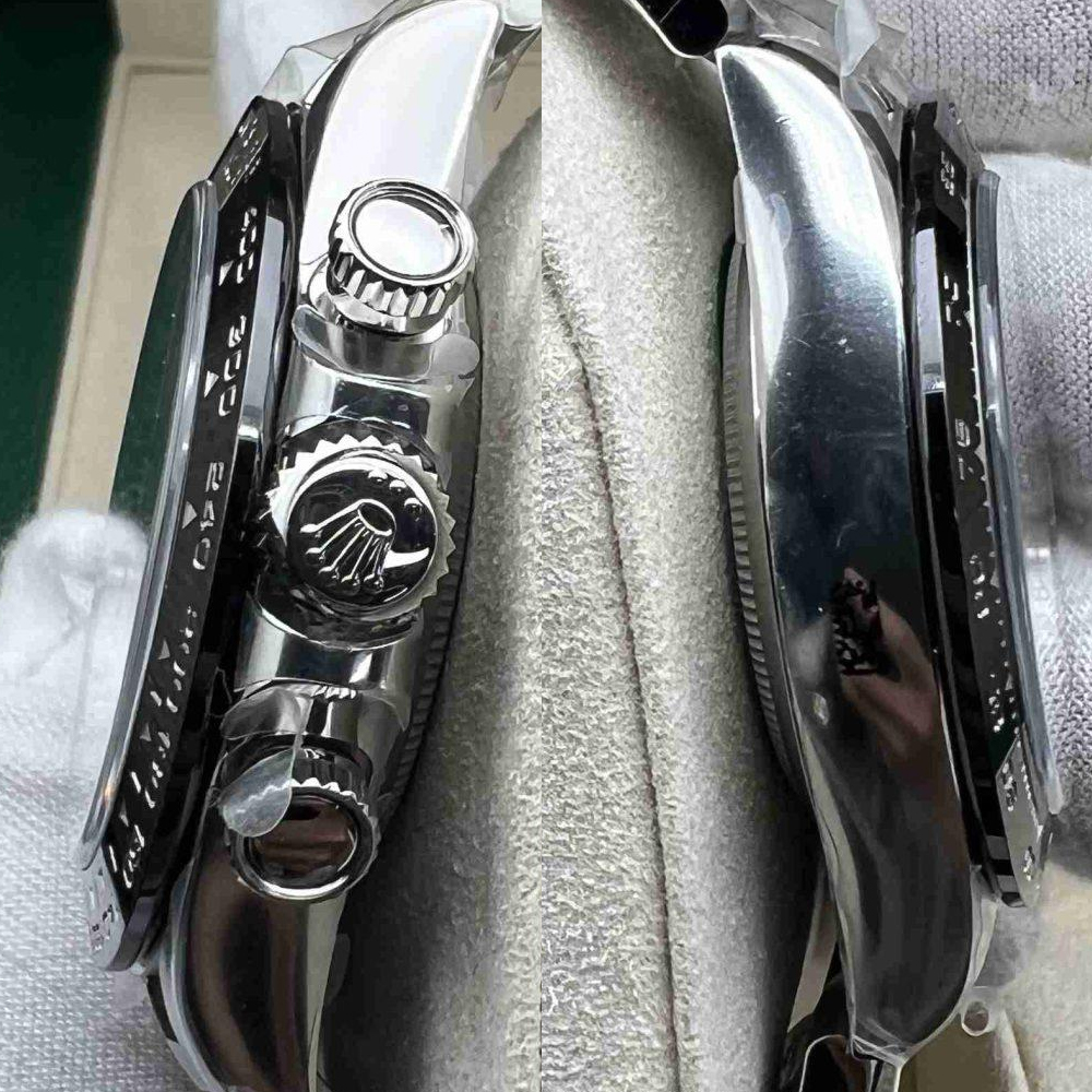 ケース:クリーンファクトリーは40mmの一体型904Lステンレス製モノブロックを採用し、本物のロレックスステンレスに一致しています。ねじ込み式のケースバック、プッシュボタン、巻き上げリューズが特徴で、すべて合成ゴムで密閉されており、完璧な防水性を備えています。Rehautリンクに施されたROLEXROLEXレザー刻印が時計の真実性を確保でき、DLCスクラッチプロテクション・コーティングは時計の耐久性を確保できます。寸法と重さが完璧に再現されたため、楽に正規品部品と交換することができます。