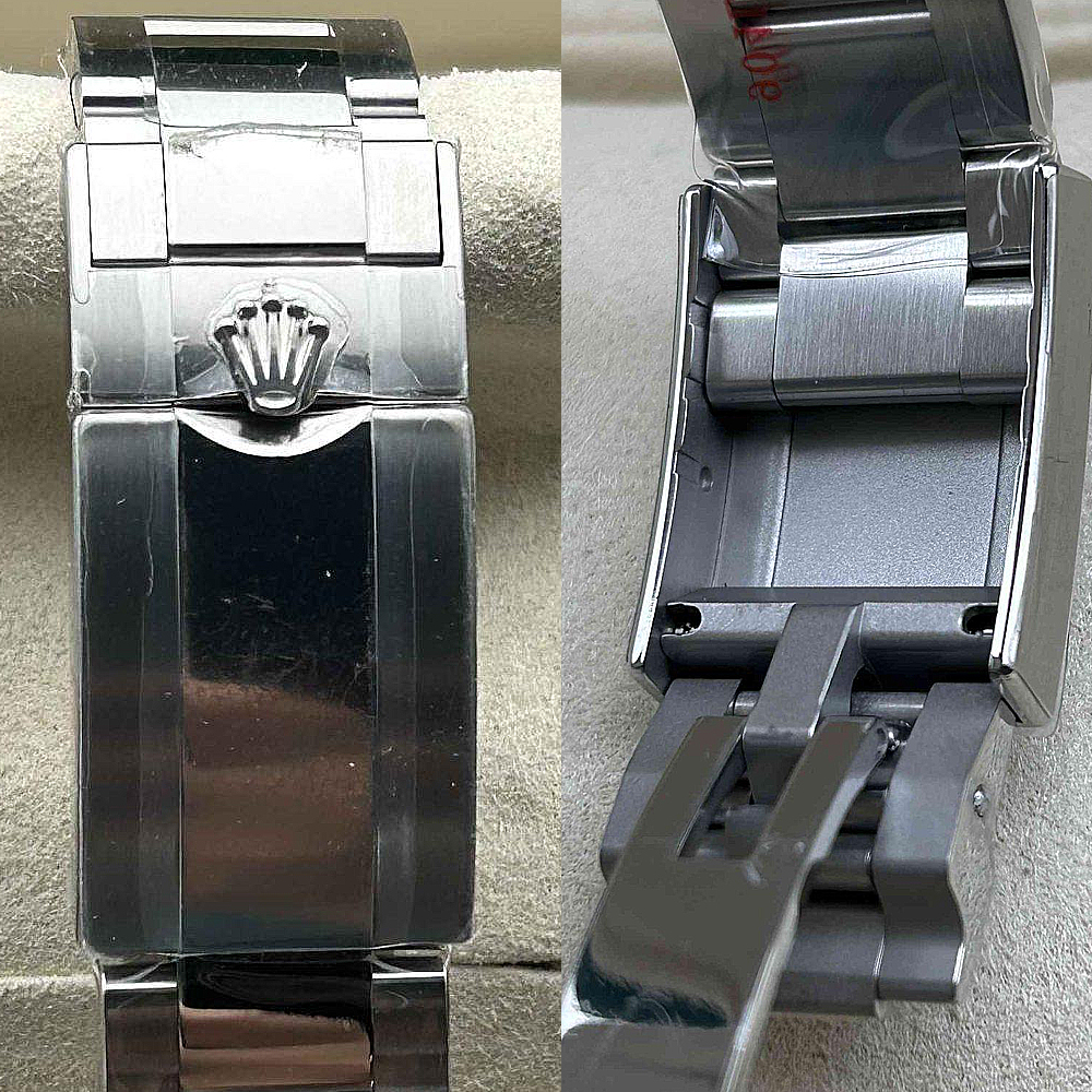 ベルト:ベルトは平たい3列なオイスタータイプにデザインし、快適な付け心地とスタイルをもたらします。クリーンファクトリーは904L高強度ステンレススチールを採用し、DLCスクラッチプロティング コーティングを施され、長持ちできるように作られています。しっかりとしたネジ山が所定の位置に固定され、折りたたみ式オイスターロック安全クラスプはEasylink 5 mm コンフォート エクステンション リンと組み合わせて、素早く長さを調整できます。