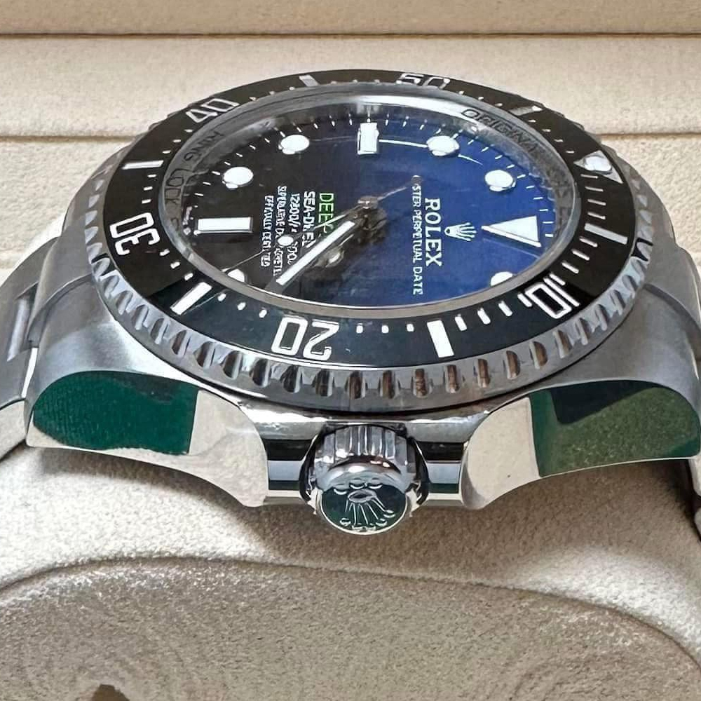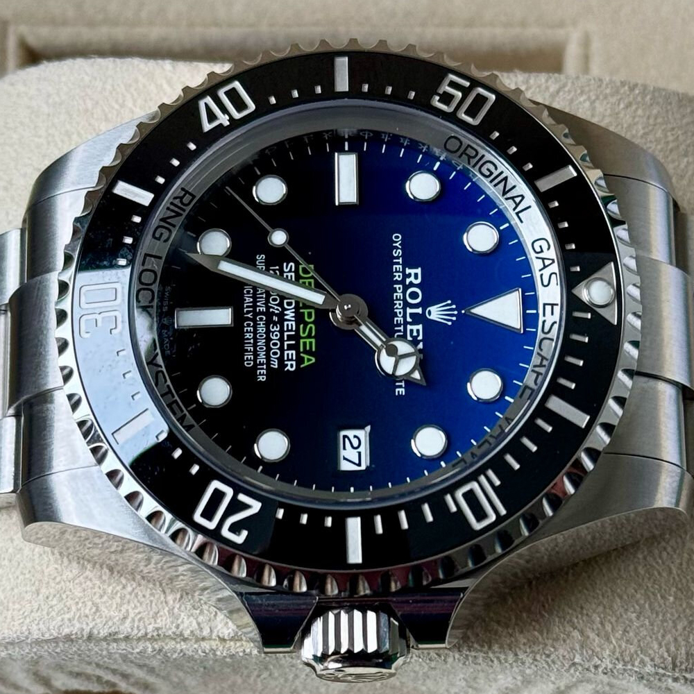 Dブルーの文字盤は、深海の深い青を思わせ、美しさと機能性を兼ね備えた一品です。