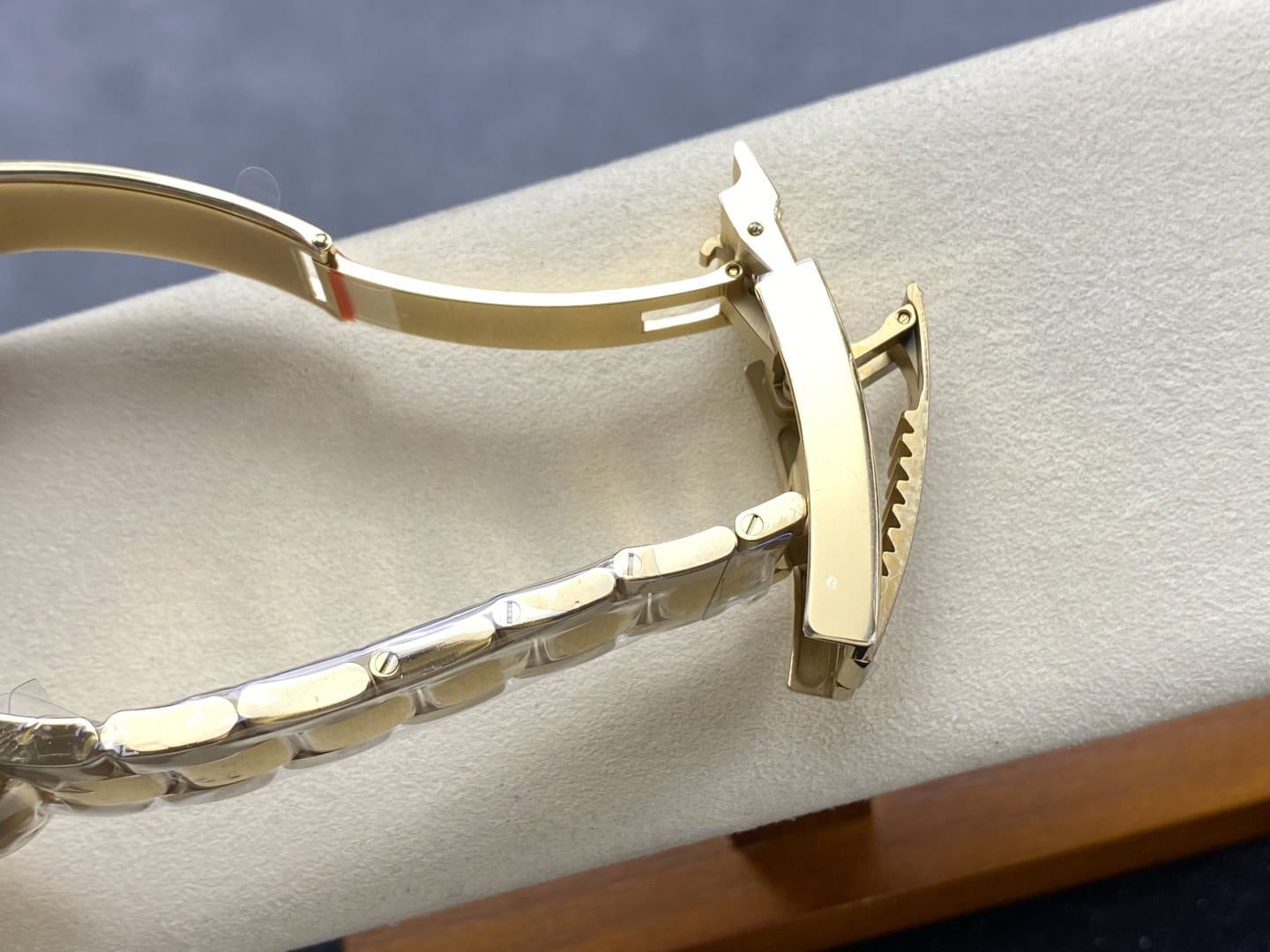 18K砲金製ブレスレットには、グライドロックエクステンションシステムを搭載したバックルを備えています。