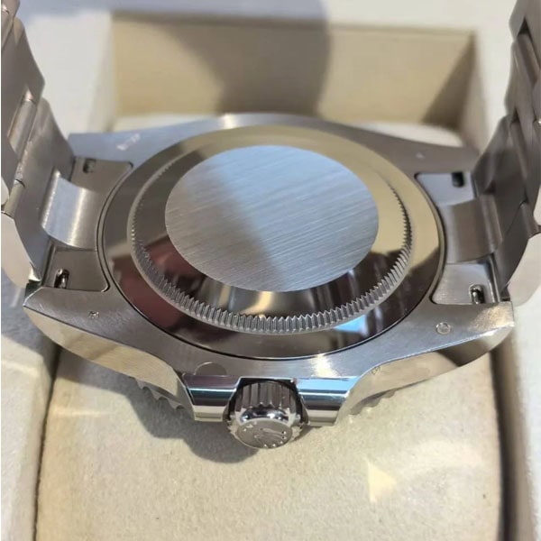 6時の位置にある小さいレーザー王冠透かしは時計の本物らしさを高めています。