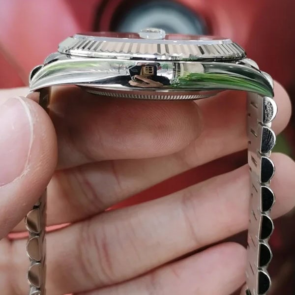 印刷、彫刻が施された文字盤は、本物のロレックスのものと見分けがつきません。