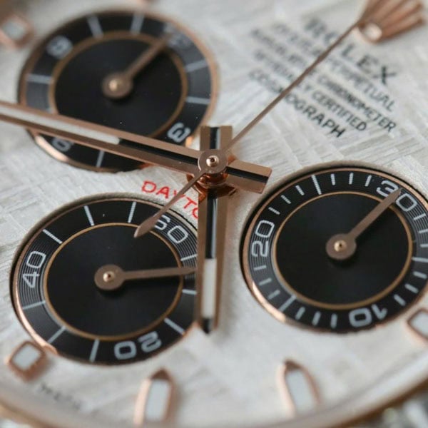 これは、コスモグラフ デイトナの中でも唯一のメテオライト文字盤のモデルです。